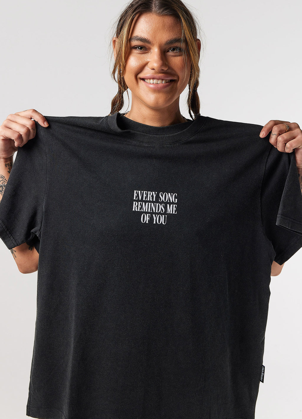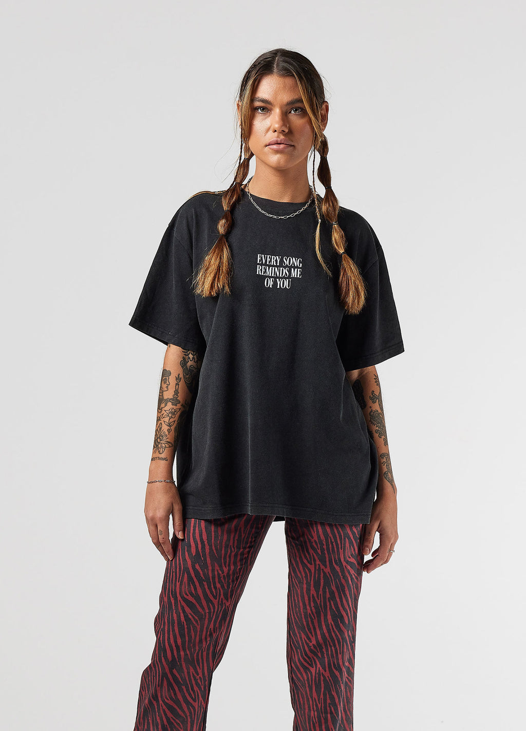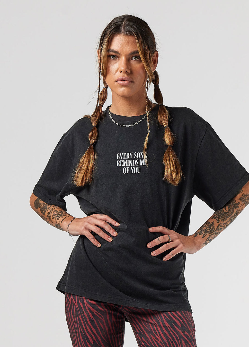 The 'Every Song' Tee has a relaxed, oversized fit - Just like the old band tee you stole from your ex's place.